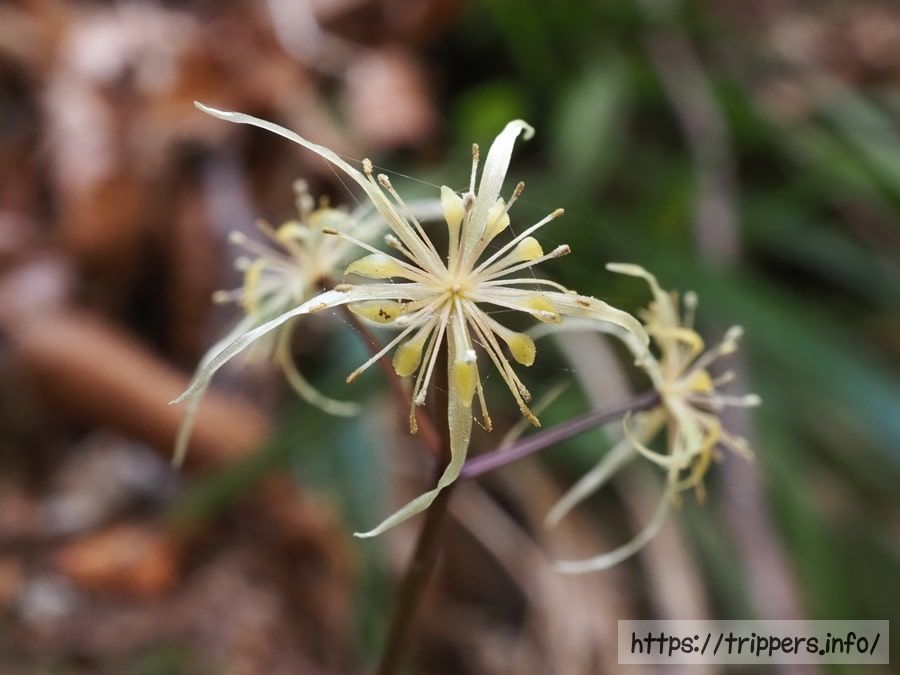 花を構成する薄黄色のパーツは長さが短いのが花弁で、長くて4~5枚あるのが萼片です。他のオウレンと比べ、萼片は波打ったり、よじれたりしやすい特徴があります。