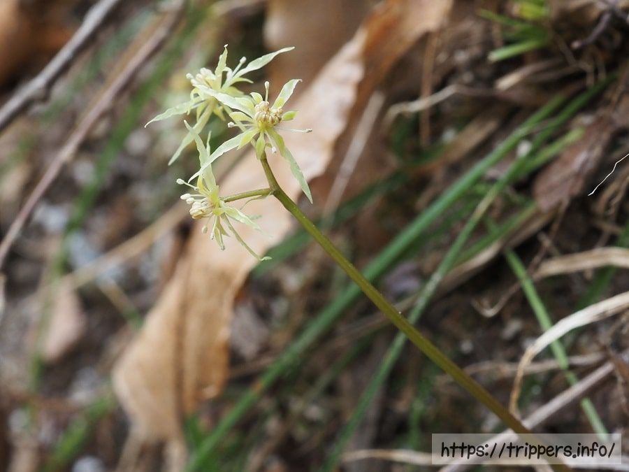 葉は3回3出複葉しますが、2回3出複葉する個体もいます。葉はセリバオウレンやコセリバオウレンなどに似ていますが、これらの花は白く、花の形も異なります。