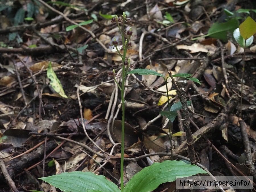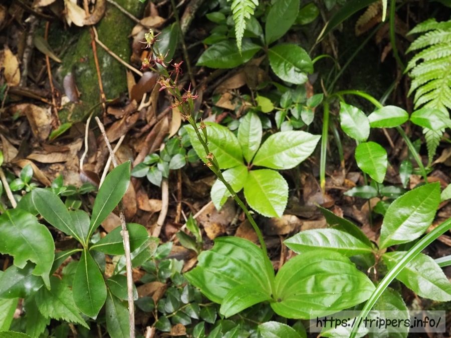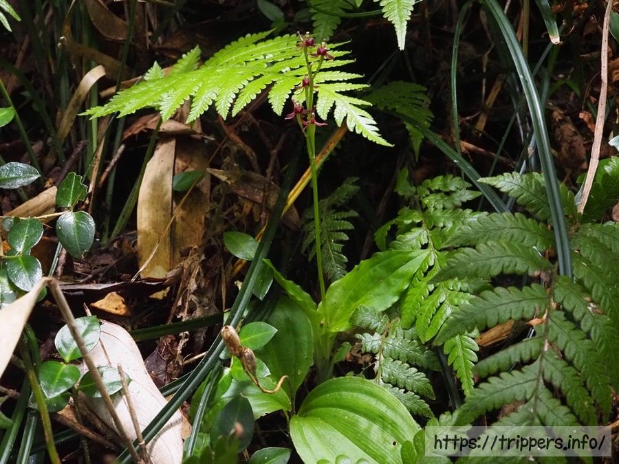 コクランとは、暗紫色の花を咲かせるラン科の多年草です。草丈は20cm前後であり、似ている植物シマササバラン(ユウコクラン)と比べて小さくて花数が少ないのが特徴です。常緑樹林の林下に自生することが多いですが、低山の明るい稜線上に他の植物に交じって存在することもあります。