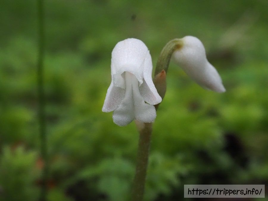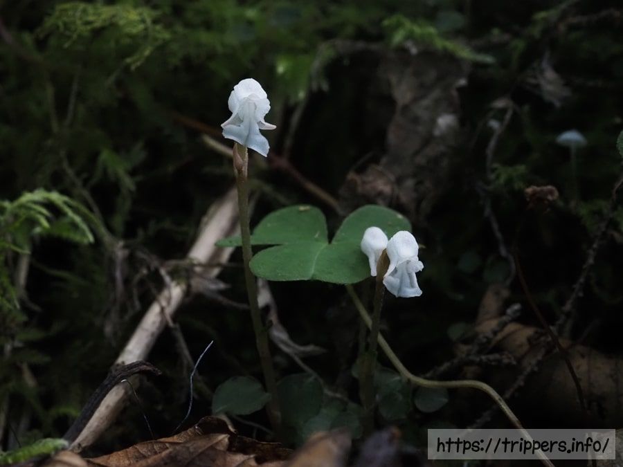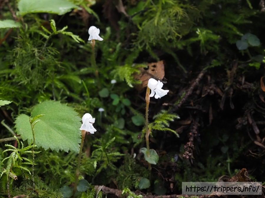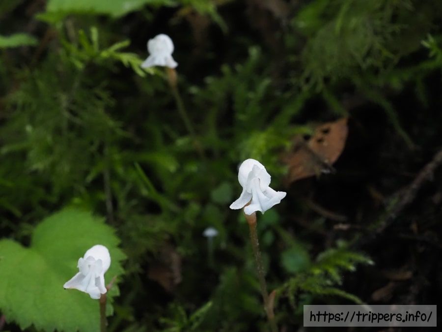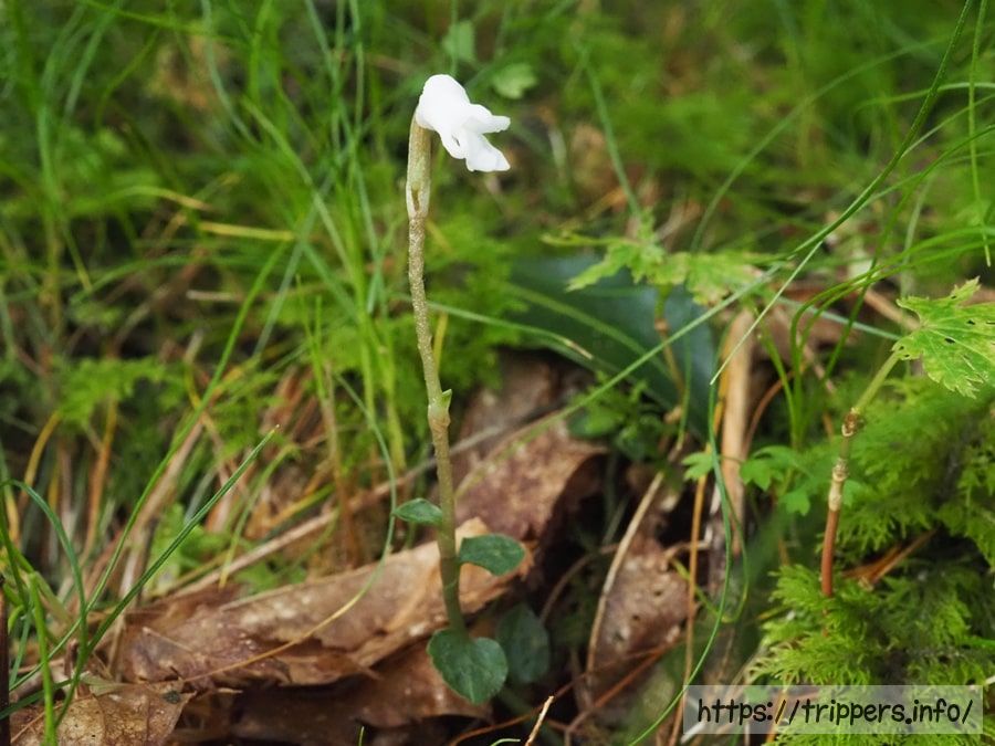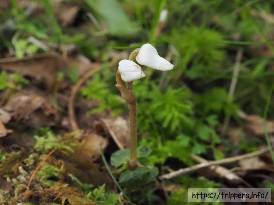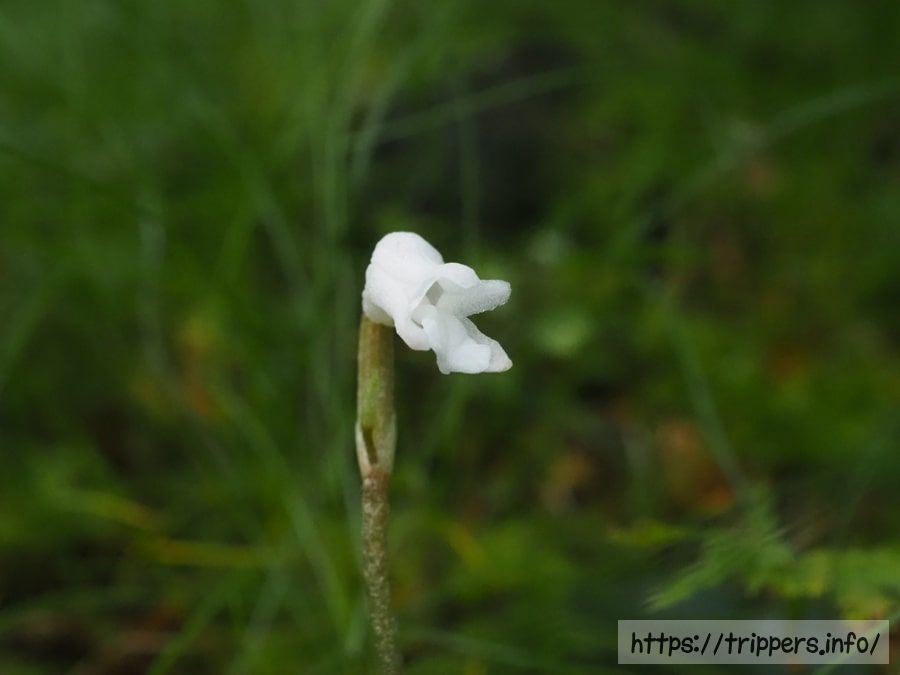 アリドオシランとは、1つの花茎に白い花を1~3個咲かせる小さな多年草のラン科植物です。花の大きさは1cm、草丈は5~10cmです。苔が生えているような湿り気のある林床に自生していることが多く、他の植物に紛れていたり、埋もれていることがあります。