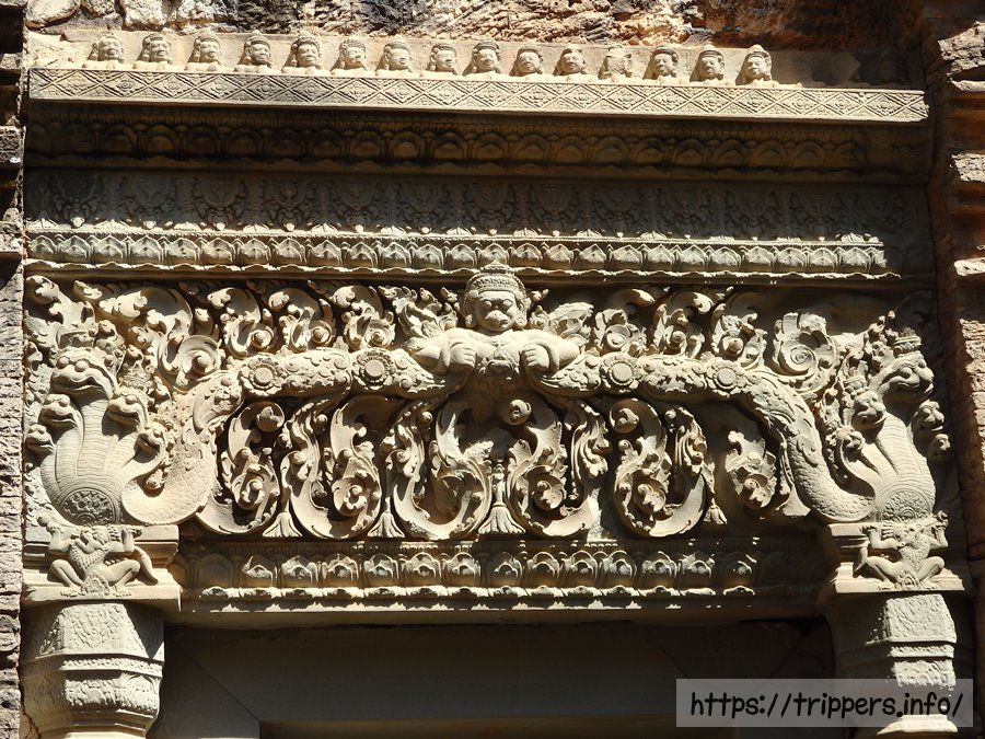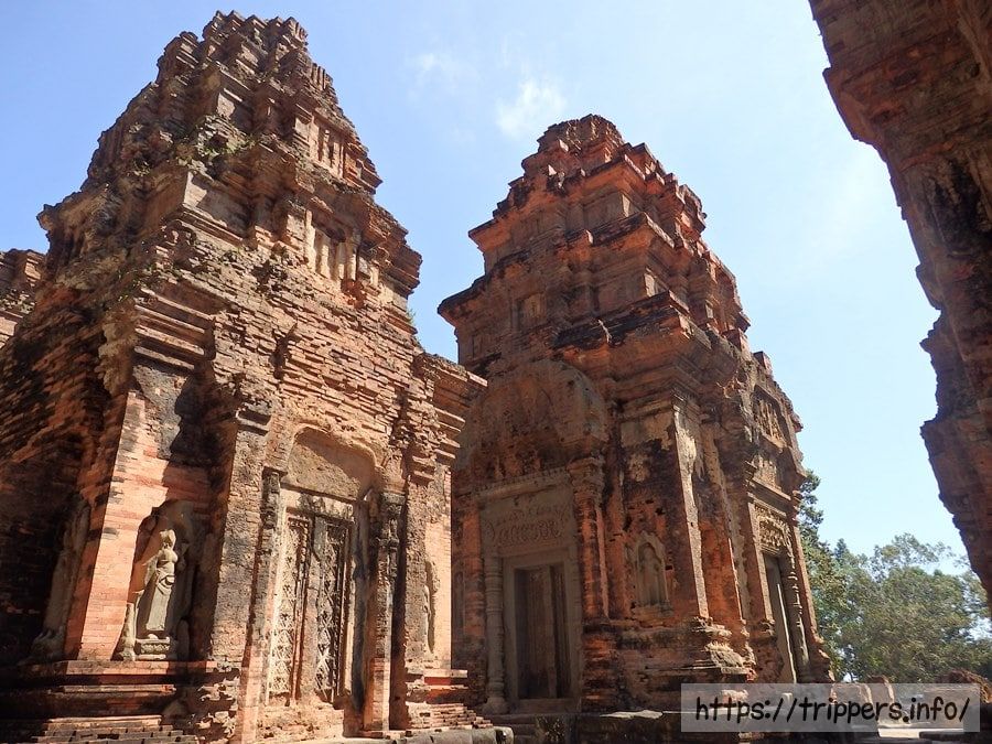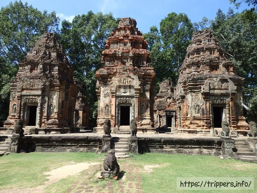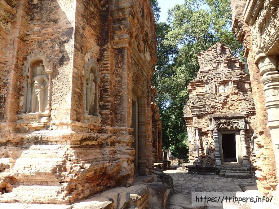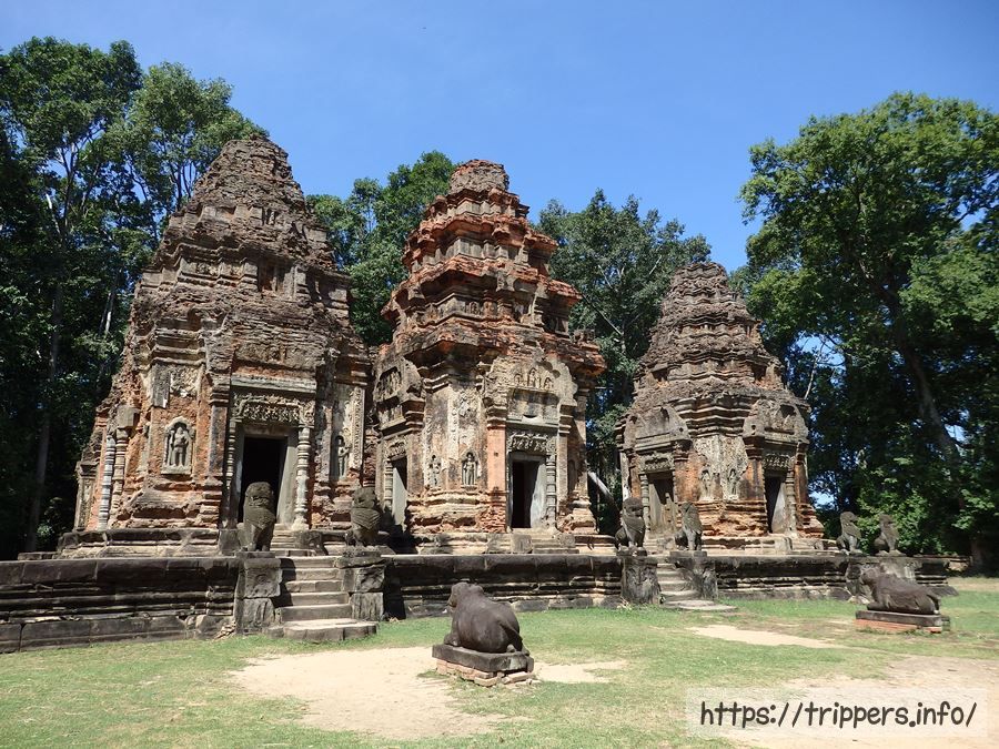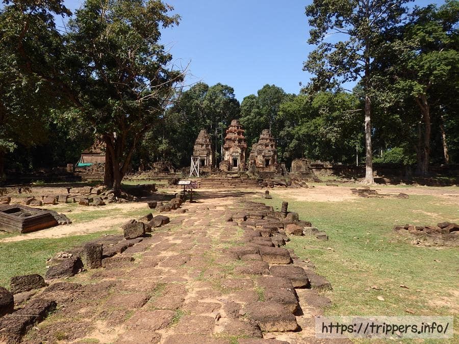 寺院の規模は東西に約500m、南北に約400mです。基壇上に6基の祠堂が並び、基壇の手前には3体のナンディン像が置かれています。手前の祠堂中央はジャヤーヴァルマン2世が祀られています。