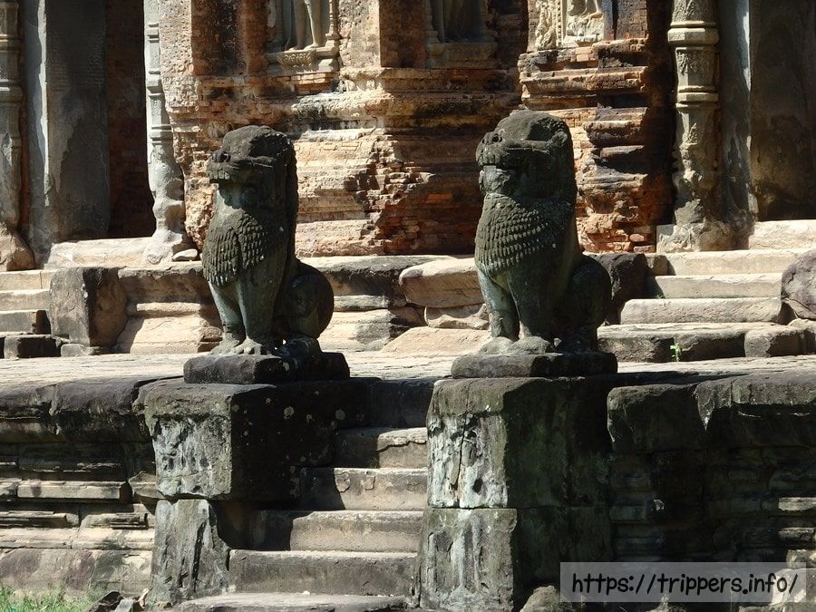聖なる牛(ナンディン)という意味のプリア・コーはロリュオス遺跡群の1つです。インドラヴァルマン1世が先王や祖先のために879年に創建した寺院です。特に先王のジャヤーヴァルマン2世の供養のための意味合いが強いです。