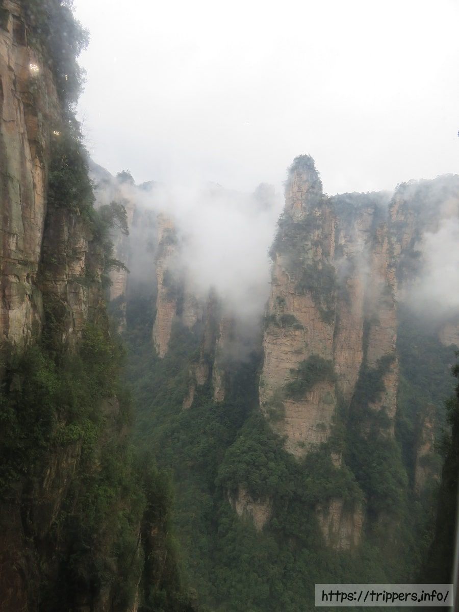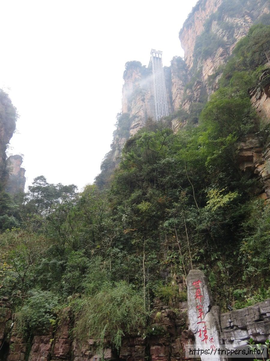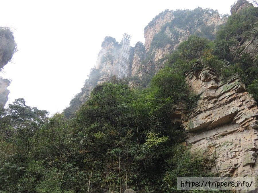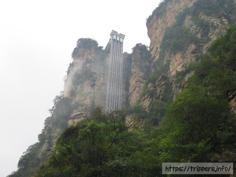 岩壁に張り付いているエレベーターの上部の長さは171mあります。2015年、エレベーターの輸送時間が片道1分58秒かかっていたのが、66秒まで短縮されました。同時に3台稼働できます。