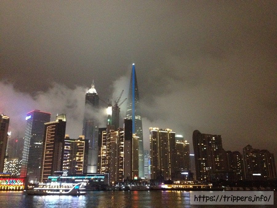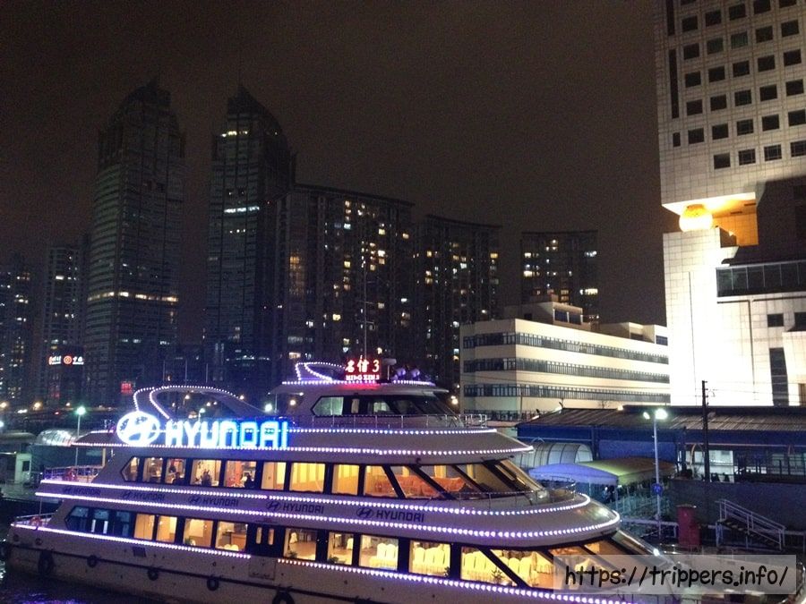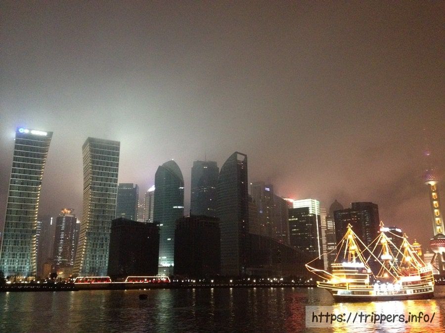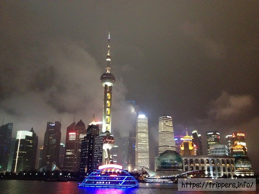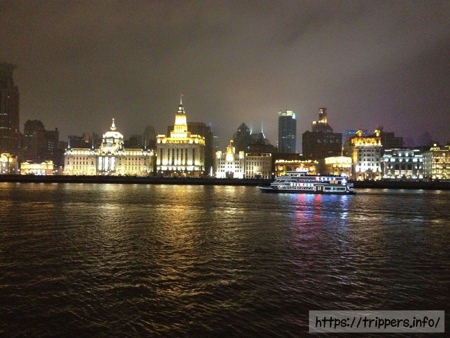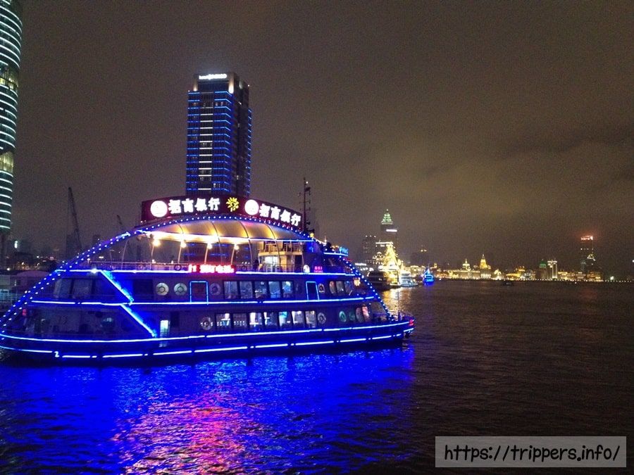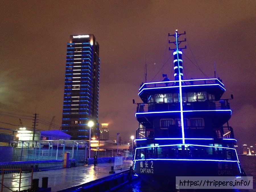 黄浦江ナイトクルーズ名鑫号とは、黄浦江を挟み、西岸に位置する外灘と東岸に位置する浦東、両岸の夜景を満喫するクルーズです。外灘の古い上海夜景は、1世紀近く前に建てられた西洋式建築物が美しくライトアップされています。浦東の近代的上海夜景は、東方明珠タワーや上海環球金融中心などの高層ビル群が美しくライトアップされています。今回は名鑫号に乗船しました。