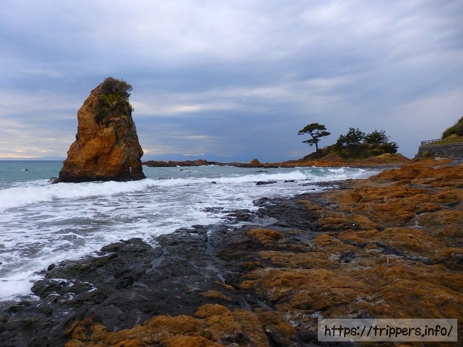 波打ち際に空へ向かって突き出ている巨岩を「立石」と言い、同時に、この付近の地名をも立石と呼んでいます。巨岩は高さ12m、周囲約30mあります。江戸時代の風景画家、初代安藤広重は、ここ立石の絶景を「相州三浦秋屋の里」と題して描いています。「かながわの景勝50選」に選ばれています。