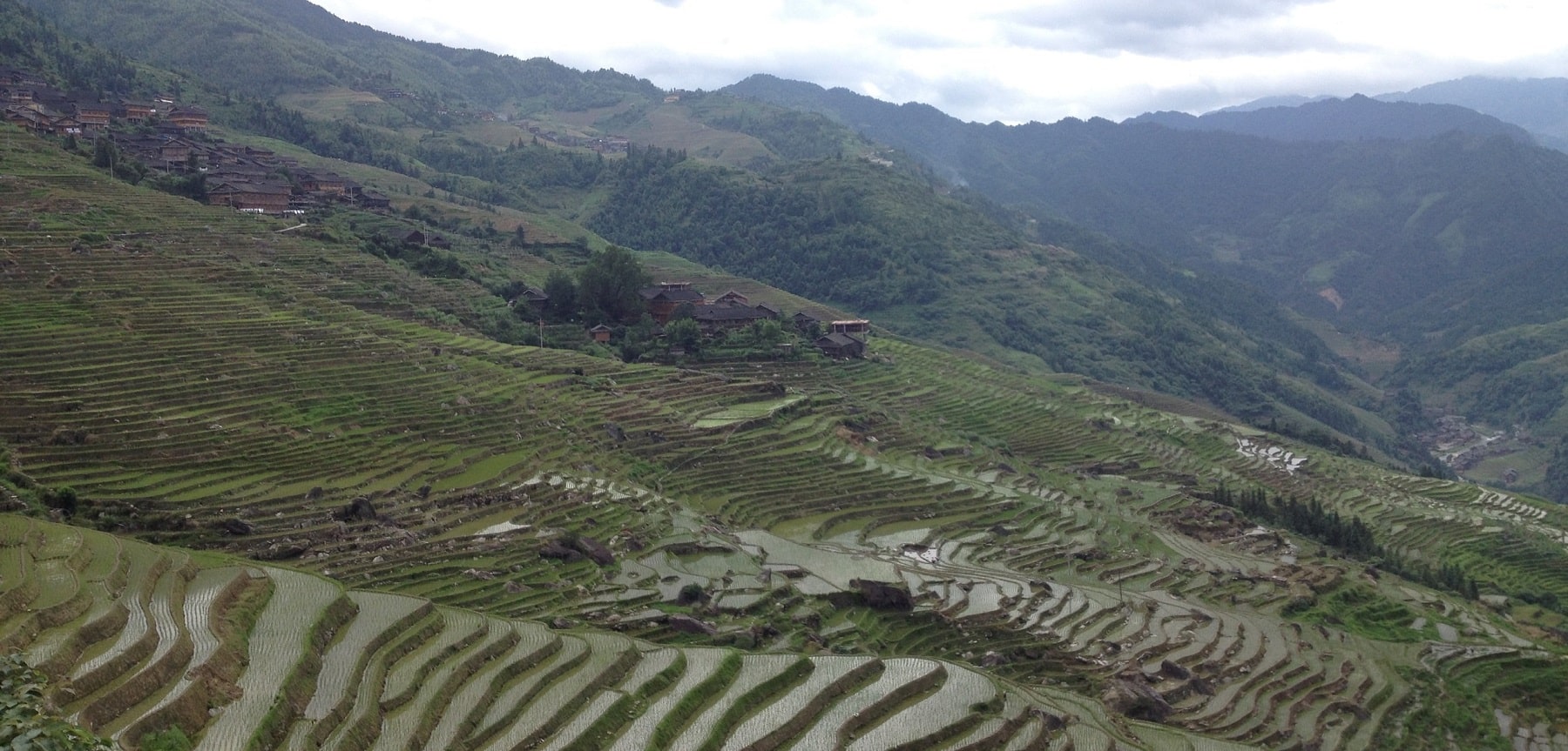 広西チワン族自治区桂林市の北西に位置する龍勝県東南部にある棚田です。主な棚田は平安壮族梯田、龙脊古壮寨梯田、金坑梯田の3つあります。平安壮族梯田から0.6km離れた場所に龙脊古壮寨梯田があり、そこから3.7kmに離れた場所に金坑梯田があります。平安壮族梯田の観光名所は七星伴月观景点です。金坑梯田の観光名所は金佛顶观景点と西山韶乐观景点です。