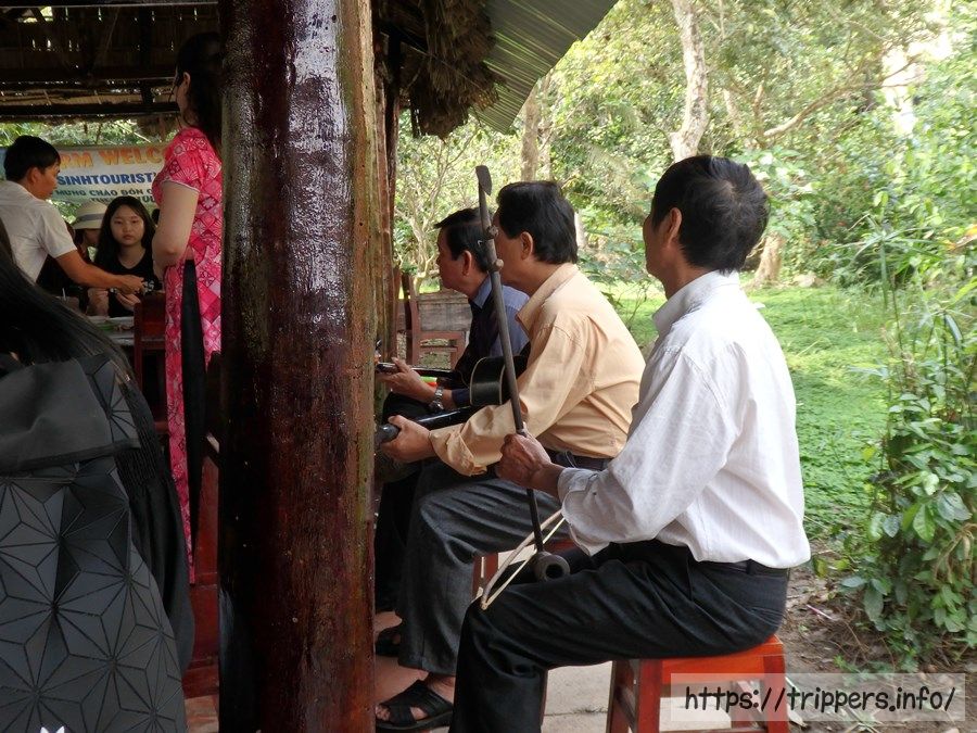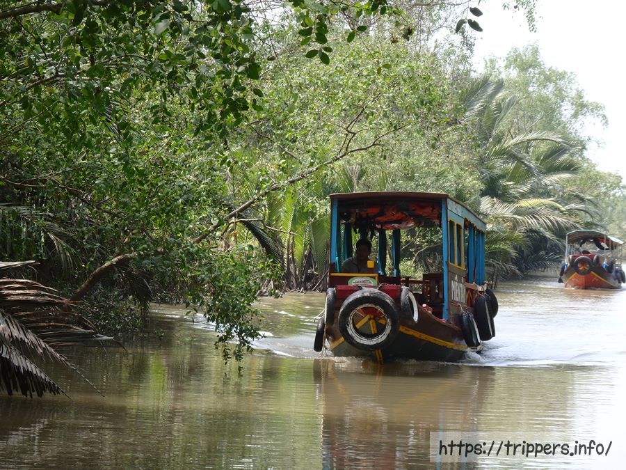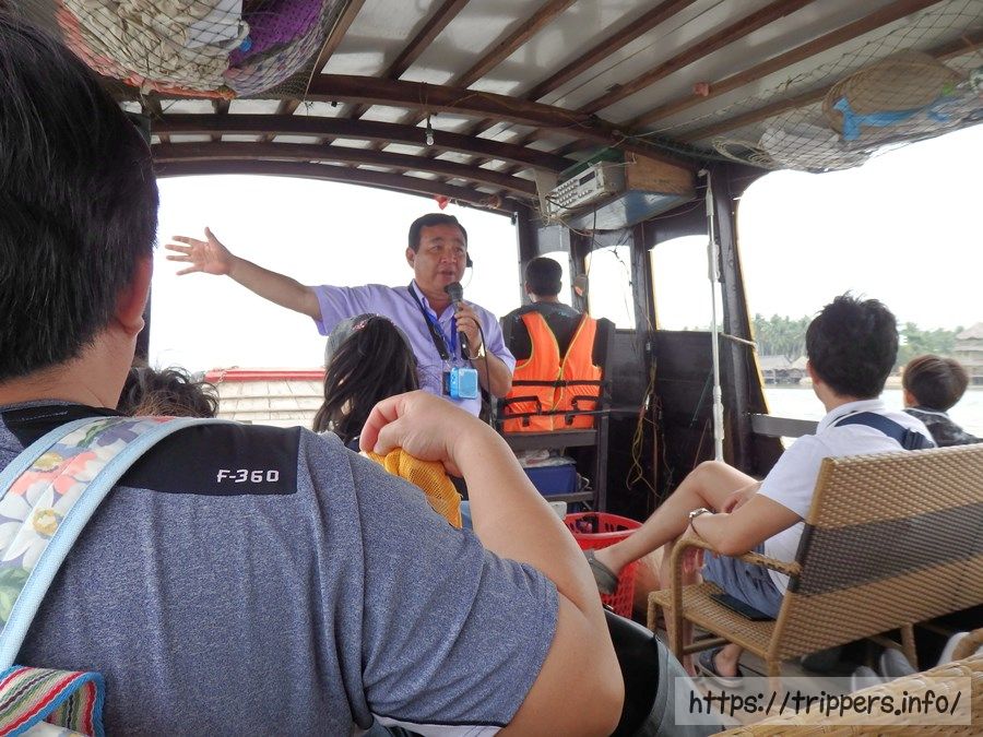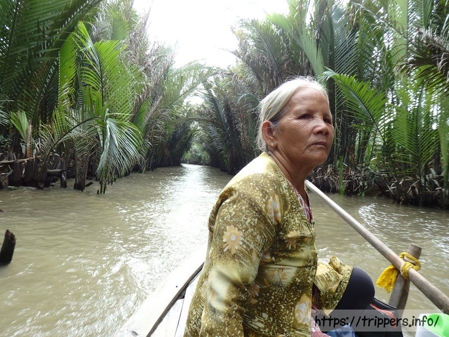 このツアーのハイライトである小舟での遊覧。距離は短く、手漕ぎは少しだけで途中からエンジンになってしまうのですが、イメージしていたメコン川クルーズを体験する事ができました。もちろん最後にチップの要求があります。