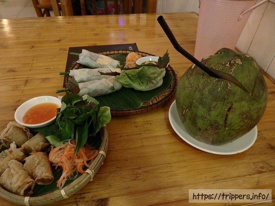 私は南部特産のライスペーパーを使った生春巻きや揚げ物、オムレツを頂きました。スタッフは優しい感じで好印象でした。