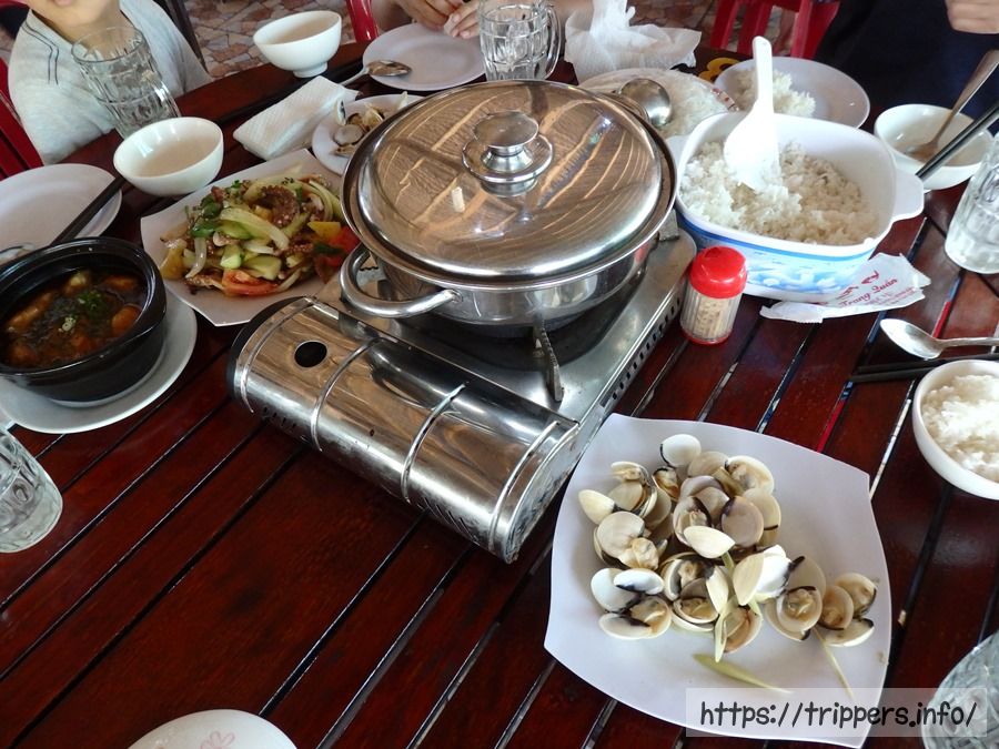 昼食はスープに米粉麺を入れたものがメインでした。個人的に手前の貝が一番美味しかったです。