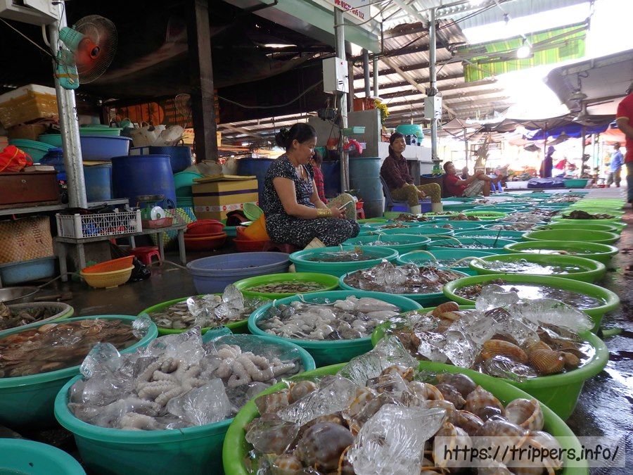 次は市場散策です。既に昼食を済ませているので買う必要ありませんが、ここで買って網焼きができるようでした。