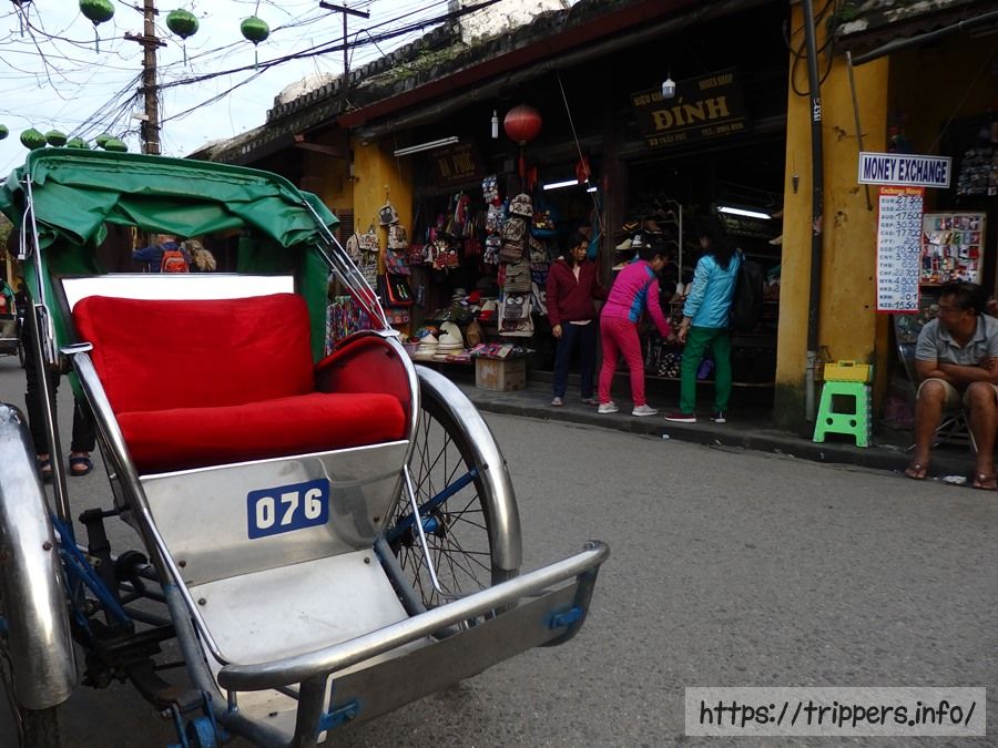自転車の前に人力車の座席をくっつけたようなシクロはホーチミンでも見かけましたが、ホイアンの方が街中を歩いているだけで情緒があるので乗ってみたくもなります。