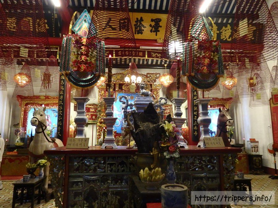 明郷華先堂は観光客がいませんでした。ここもチケットを使います。福建会館等と同じ前堂、中庭、本殿がありました。前堂の祭壇に祀られている3人の神様が印象的です。