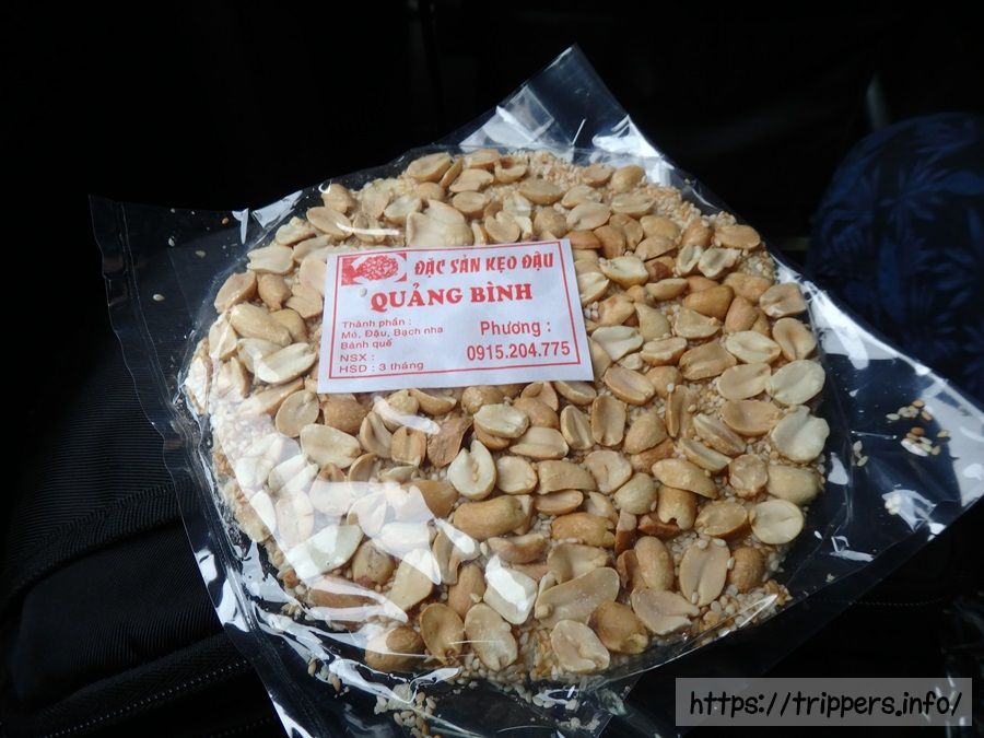 ツアー会社の人からおやつを配られました。ナッツを固めた甘いせんべいのようなお菓子で、甘すぎず美味しかったです。