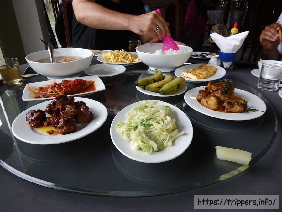 昼食はフォンニャ洞窟がある敷地内のレストランで団体の食事です。参加者の1人がベジタリアンでしたが、その対応もしてくれるようです。