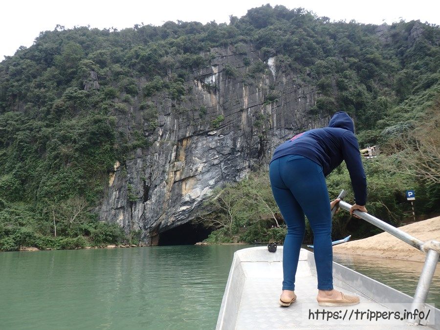 フォンニャ洞窟は川の水が山を削って形成された洞窟で、手漕ぎで移動します。漕ぐ人は大変ですが、エンジンを使わないのは良いですね。
