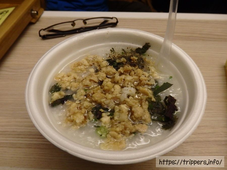 部屋に戻り暫くするとお粥の移動販売があり、それでお腹を膨らませました。