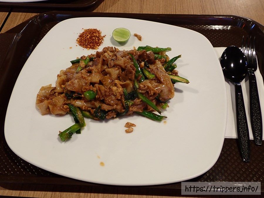 スクートの機内では食事がでないので、遅めの昼食兼早めの夕食になりました。パッシーユと呼ばれる太麺の焼きそばで、少し甘めでしたが口に合いました。