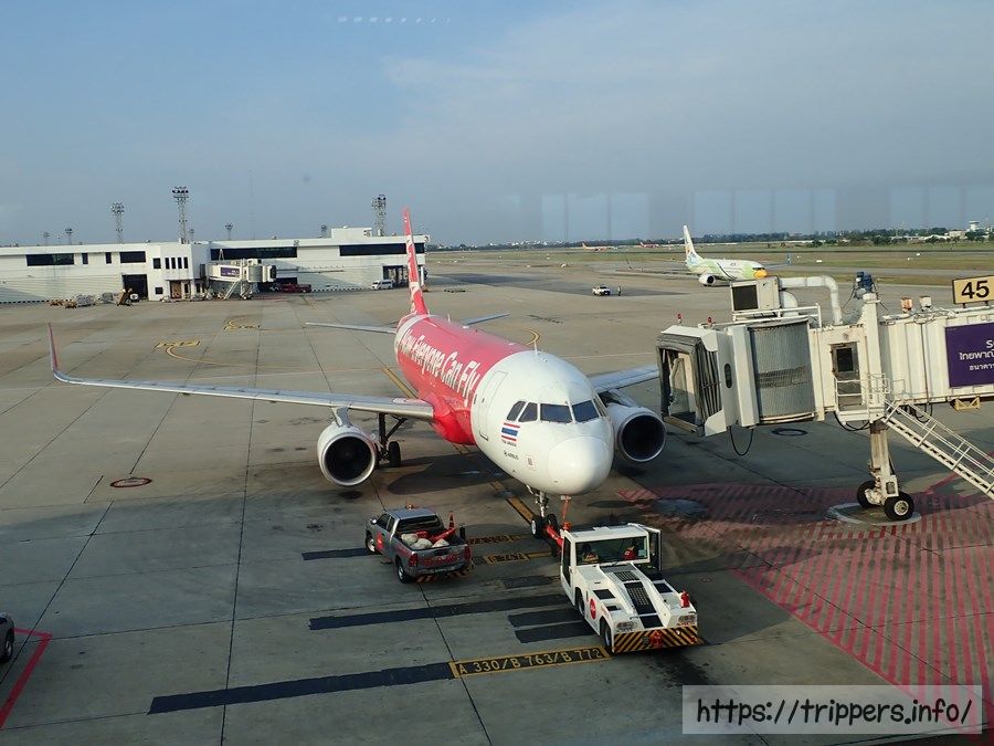 搭乗時間通り問題なくチェンマイへ向かう飛行機に乗り込みます。荷物は肩掛けバッグとリュックの各1つなので全て機内持ち込みです。バックパッカー旅行です。
