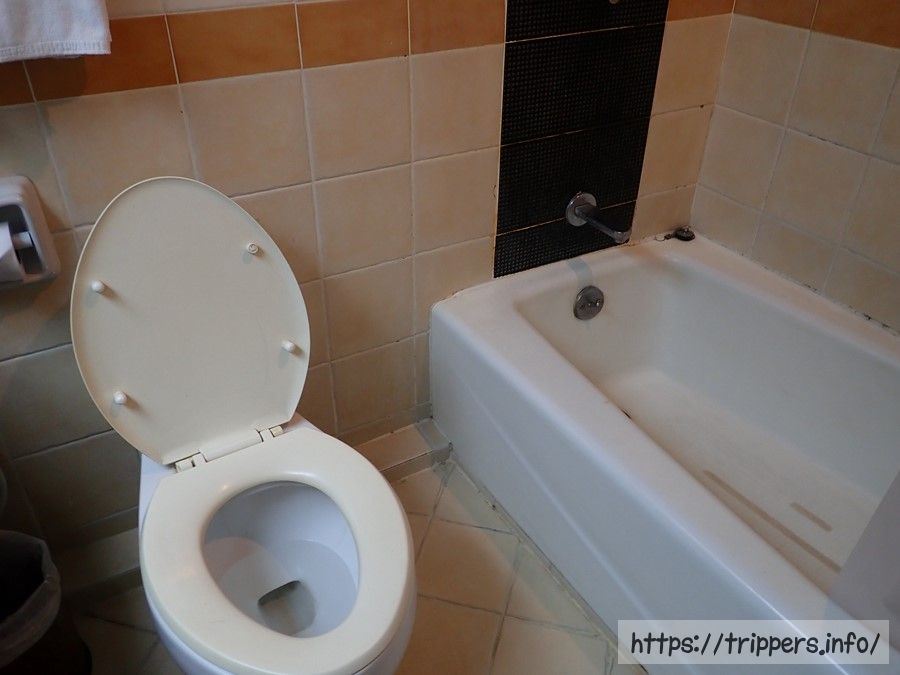 雰囲気のあるホテルでしたが、部屋の中は、床の木がボロボロになっていたり、バスタブが雑に補修されていたりします。