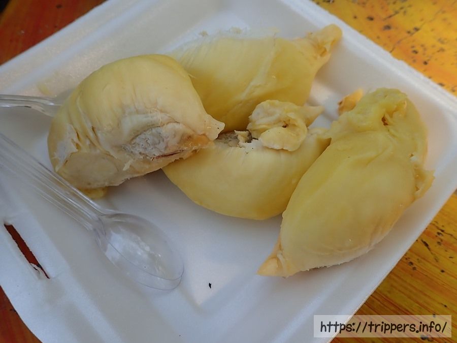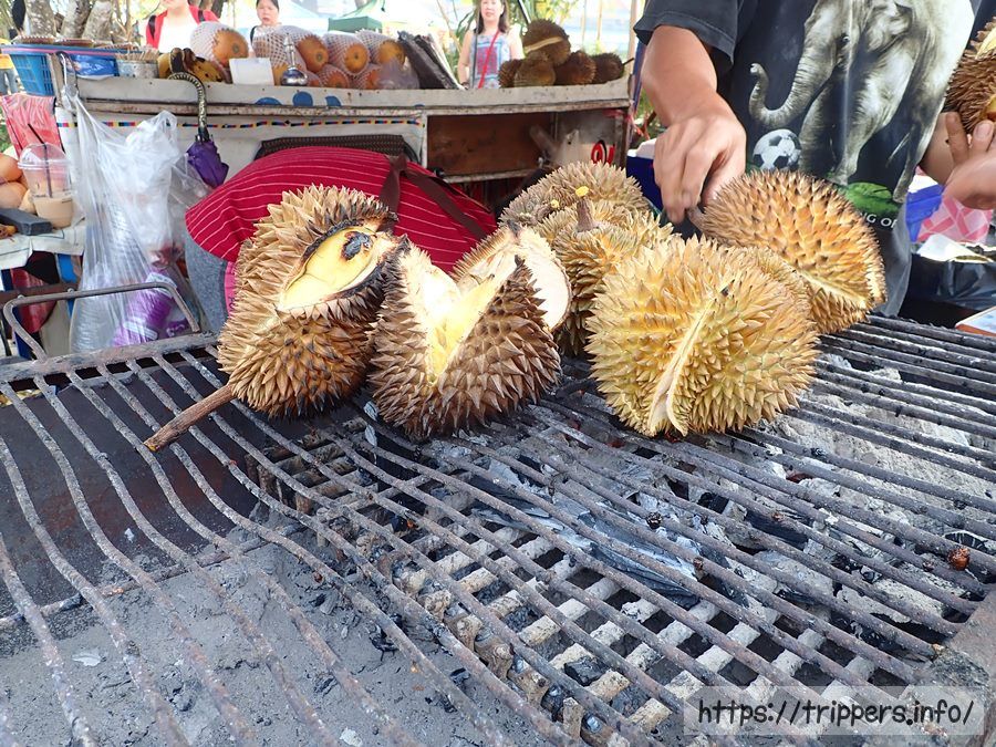 焼きドリアンが1つ300バーツで売っており、買ってしまいました。結構小ぶりだったので露店や市場の値段の2倍はすると思います。