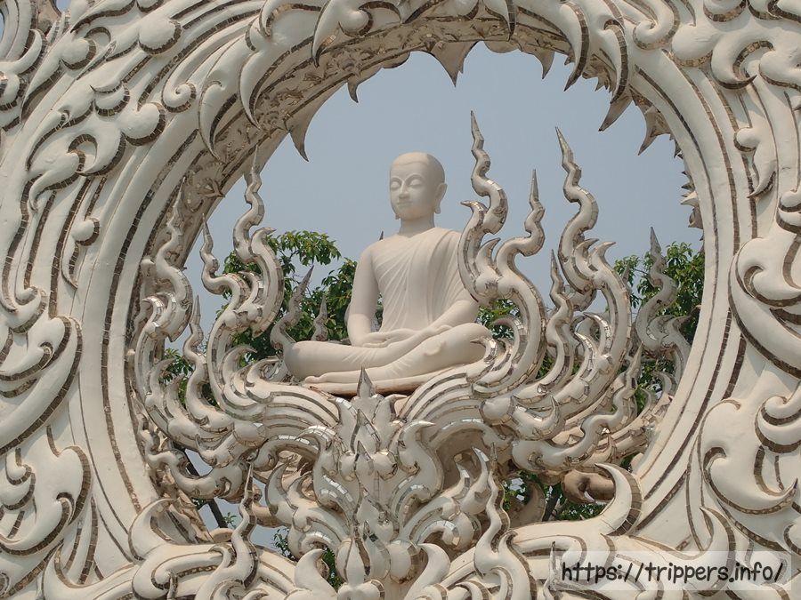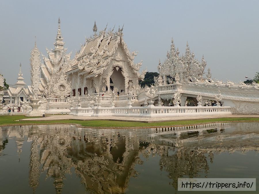 チェンライと言ったらこの寺院が一番有名です。ワット・ロンクンと言う美しい純白寺院を観光します。1997年に建てられ始めた未完成の寺院で、地獄と天国を体験できます。