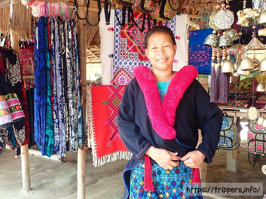 ヤオ族の女性は、赤いマフラーのようなものを着用するようです。ヤオ族は中国南部が民族の起源で、タイには100年程前にラオス方面から移動してきたとの事です。