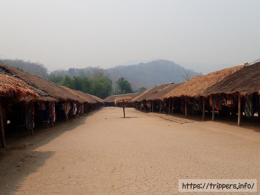 ここが首長族の村で、実際に暮らしている家はこの建物の裏にあります。