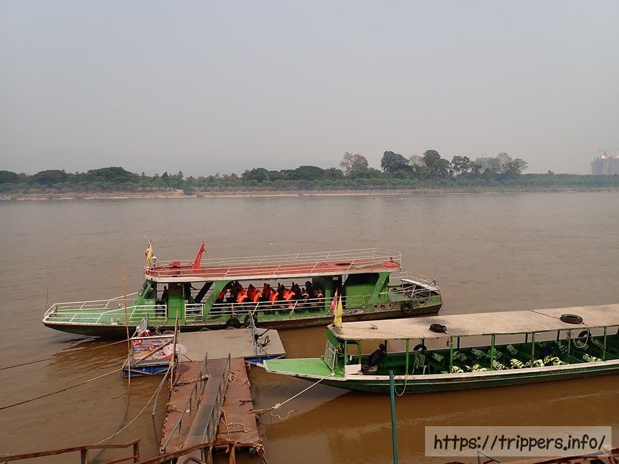 次はゴールデントライアングルへ行きボートに乗ってラオスへ入国します。向こう岸がラオスで、メコン川を渡ります。