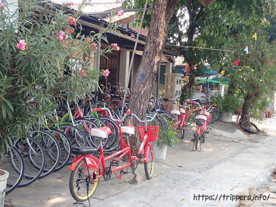 間食も終えたので、チェックアウトしリュックをホテルに置かせてもらいます。スコータイ歴史公園にある自転車屋で1日30バーツでレンタルしました。