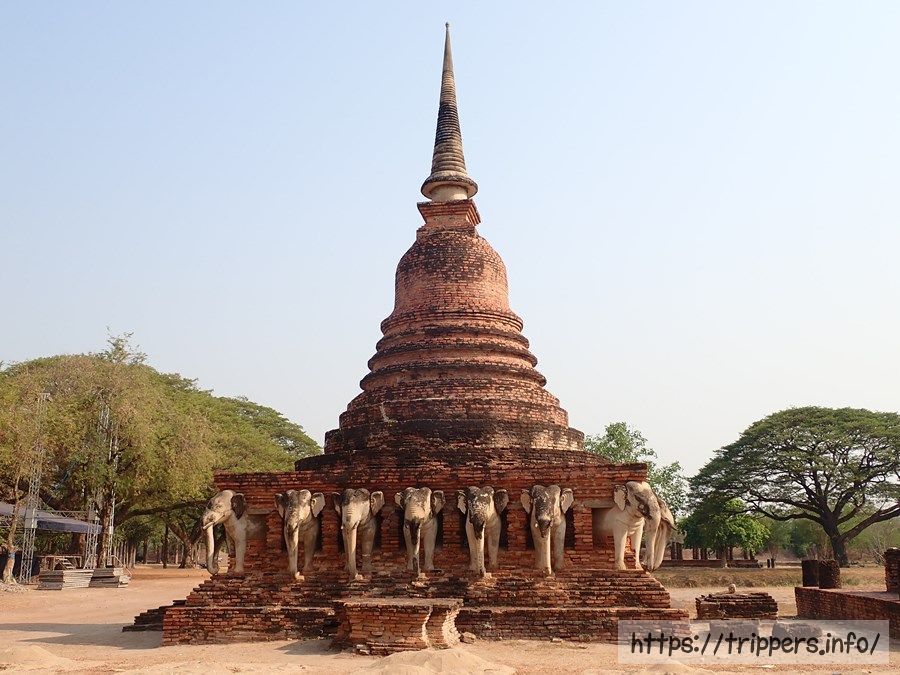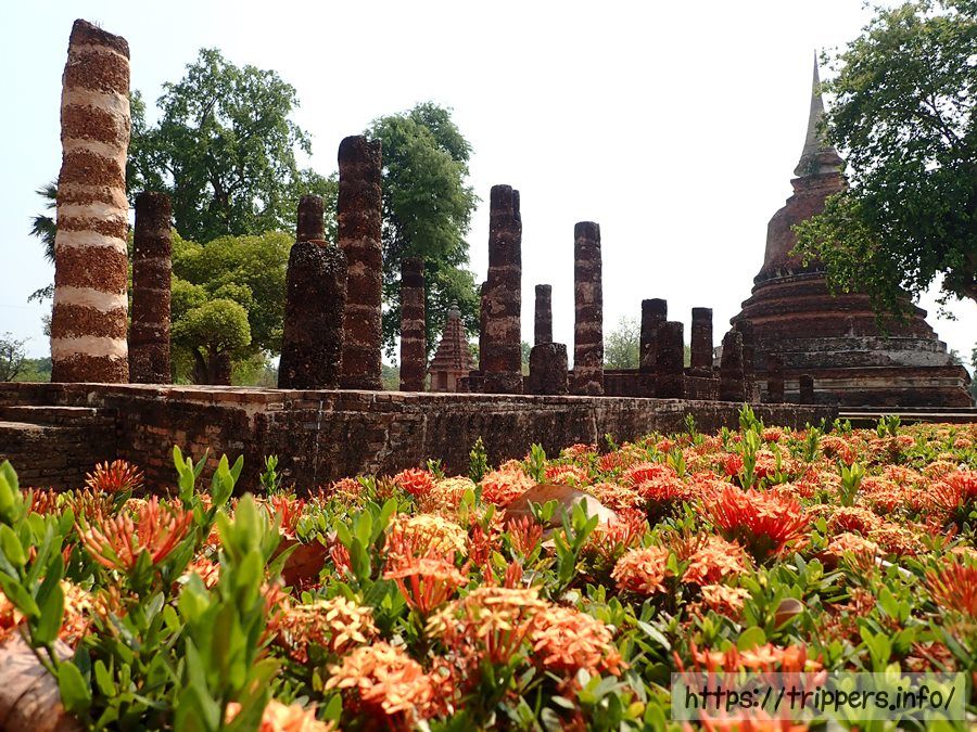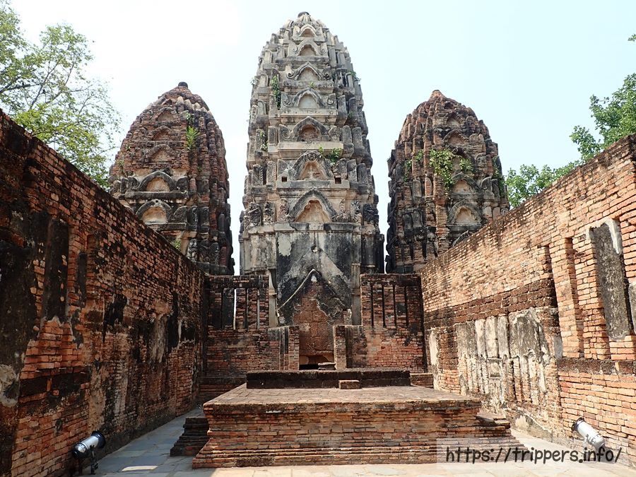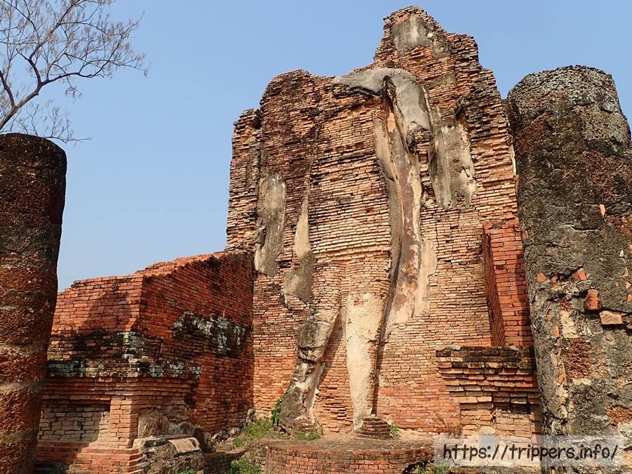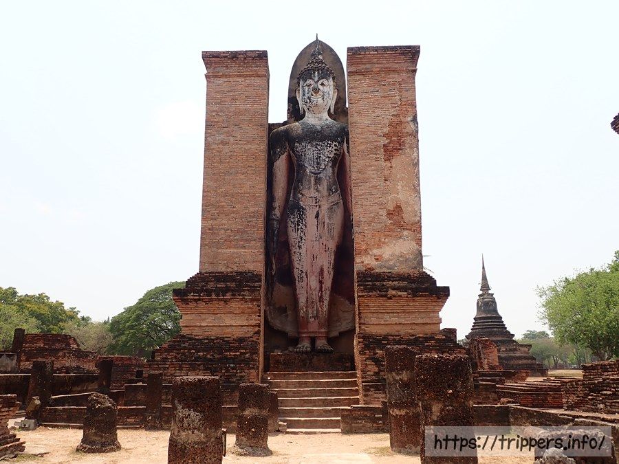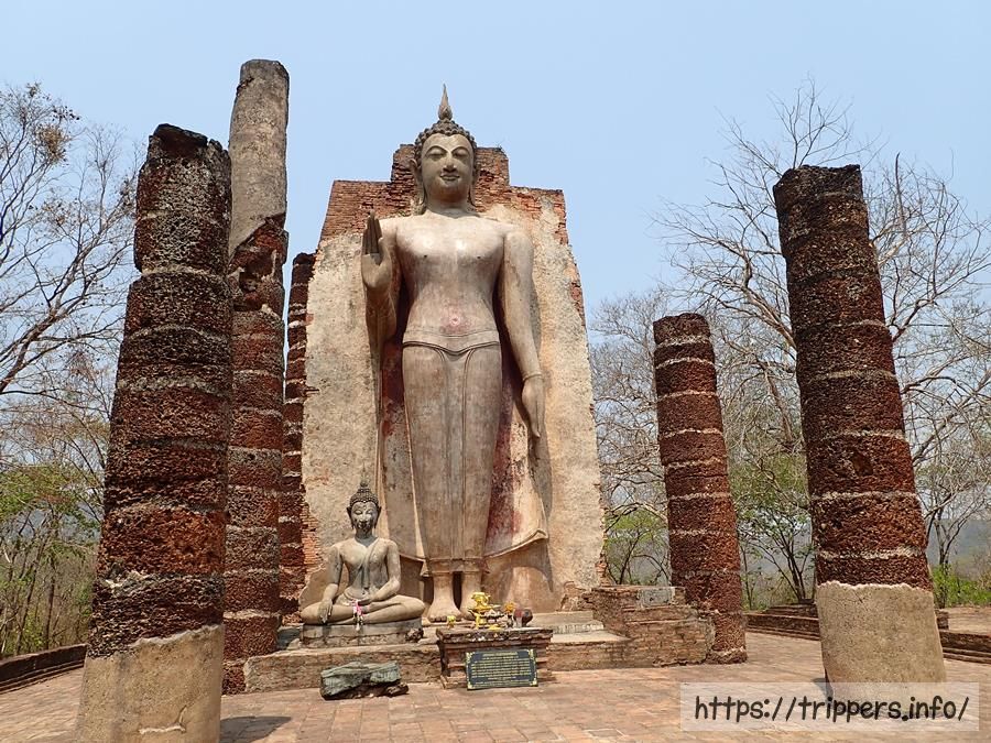 この寺院は、スコータイ王朝が誕生する以前の12世紀初頭から13世紀にかけて建立されました。さらに15世紀には異なる姿(游行像、立像、臥像、坐像)をした4体の巨大仏像が建てられました。