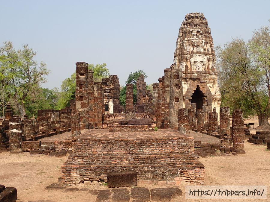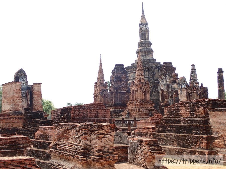 スコータイの一番のメインである遺跡で城壁内部にあります。スコータイの王室寺院で増築・修復を繰り返しており複雑な構成になっています。