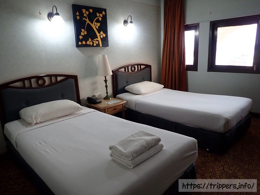 バスタブと冷房完備で1泊1,863円はお手頃値段。9Fの部屋でした。部屋数が一杯ありましたが、閑散としており宿泊者があまりいなそうな感じです。また外を歩いて分かったのですが、他の観光地だと英語や中国語など外国語の表記を見かけたのですが、ピッサヌロークでは見当たりません。外国からの旅行者もほぼいないようです。