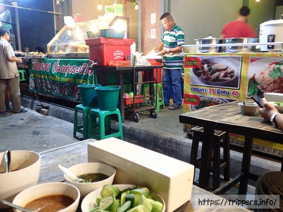 夕食はホテルすぐ側にあるターニー市場の庶民的レストランでしました。メニュー表らしきものはなく、タイ語の表記しかなかったため、何とか料理の画像がある場所を見つけ指差し注文しました。