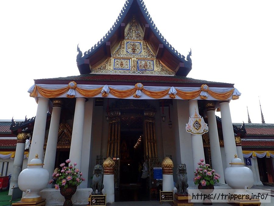 中も外もなぜか鶏の置物が多かったです。今年は干支の酉ではないです。本堂にはワット・プラシーラタナマハタートと同じようなチナラート仏が座っています。