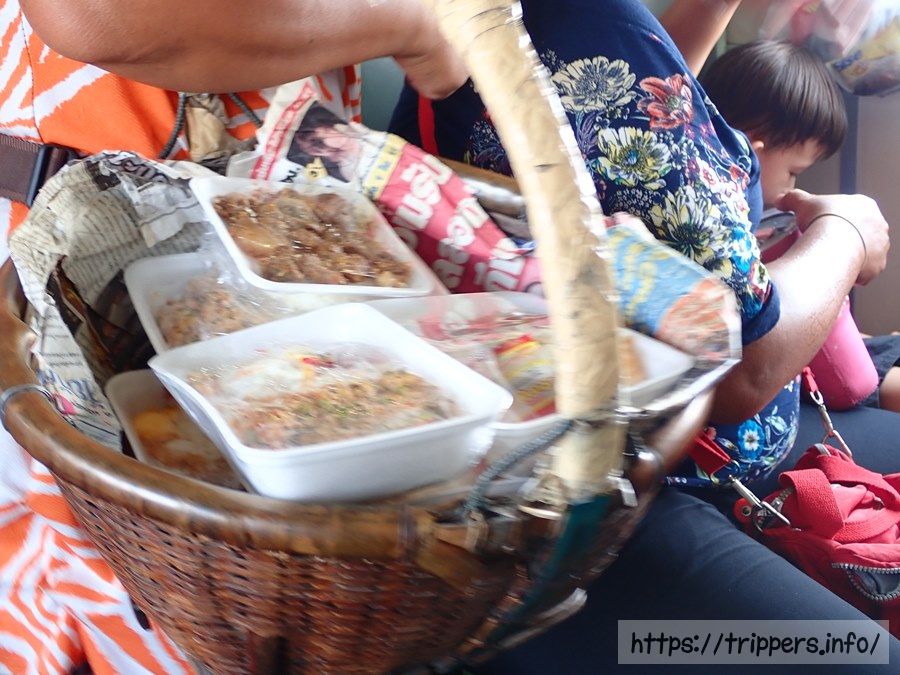 ビニール袋に入ったドリンクからお弁当、トウモロコシ等様々なものを売り歩く商売人が何往復もしています。冷たいおしぼりさえも売ってました。