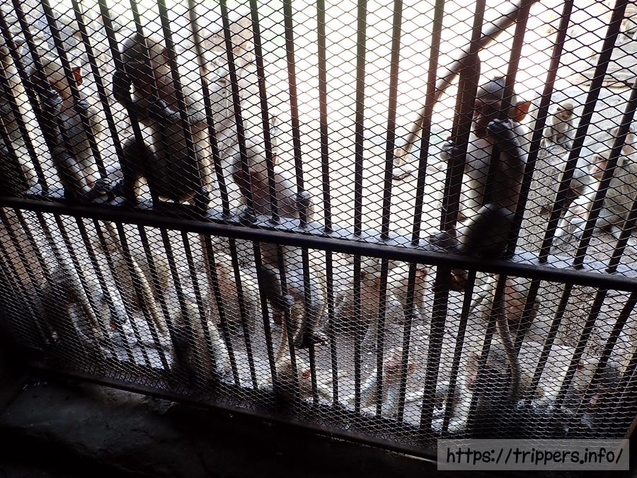 天井にはコウモリもいます。鉄格子を挟んで猿が目の前に沢山いますが、人に慣れているようで逃げようとはしません。