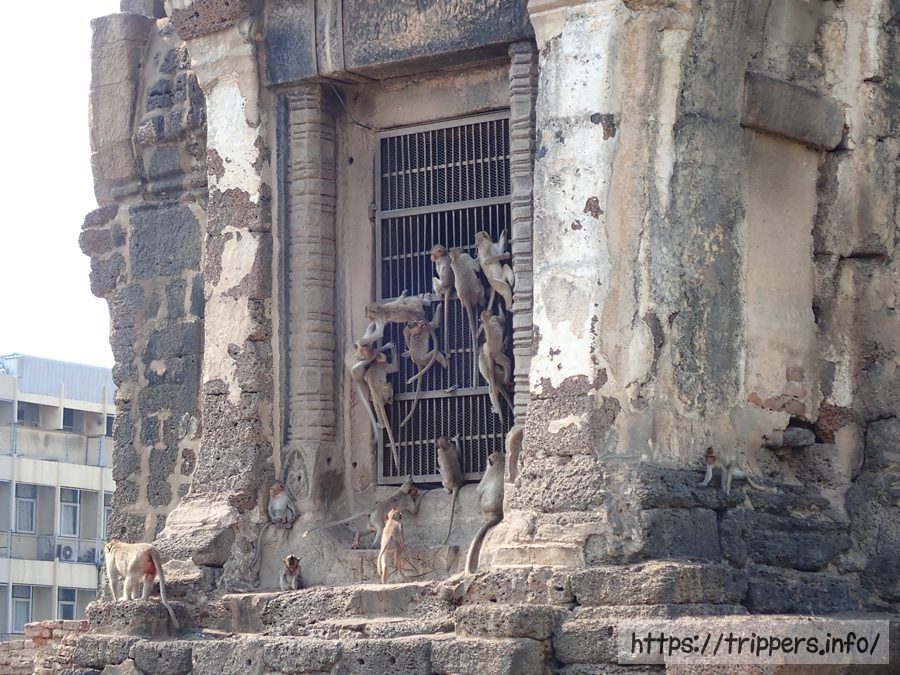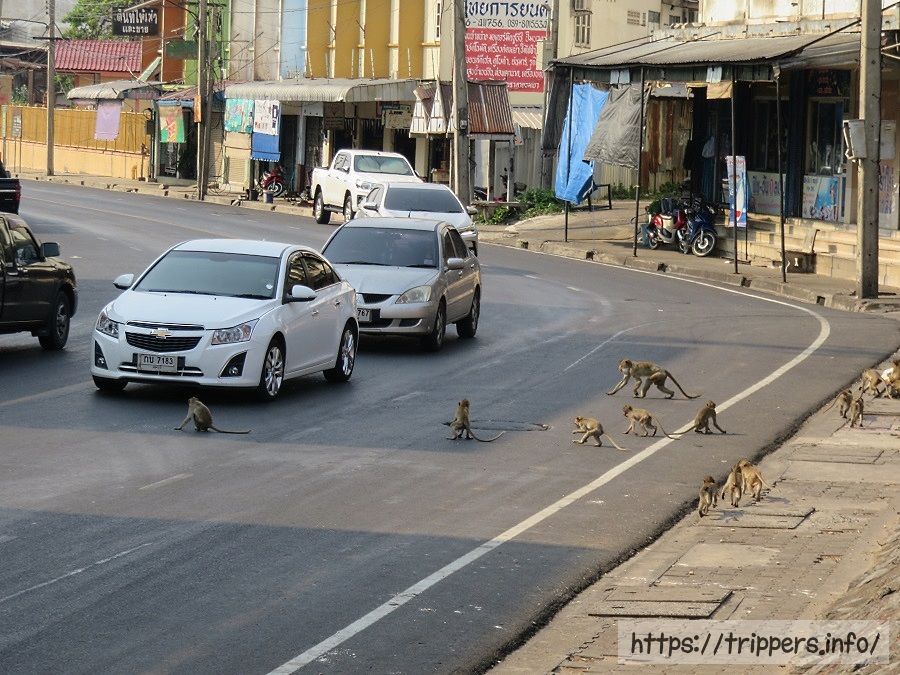 ロッブリ―の観光地は全て近い場所にあるので、全て歩いて観光していきます。歩きながらも背後から猿に襲われないか注意が必要です。
