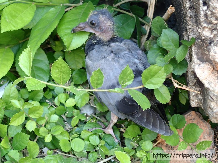 巣から落ちて日陰の隅っこに隠れていた雛を見つけました。結構な大きさまで育っていただけに残念ですね。
