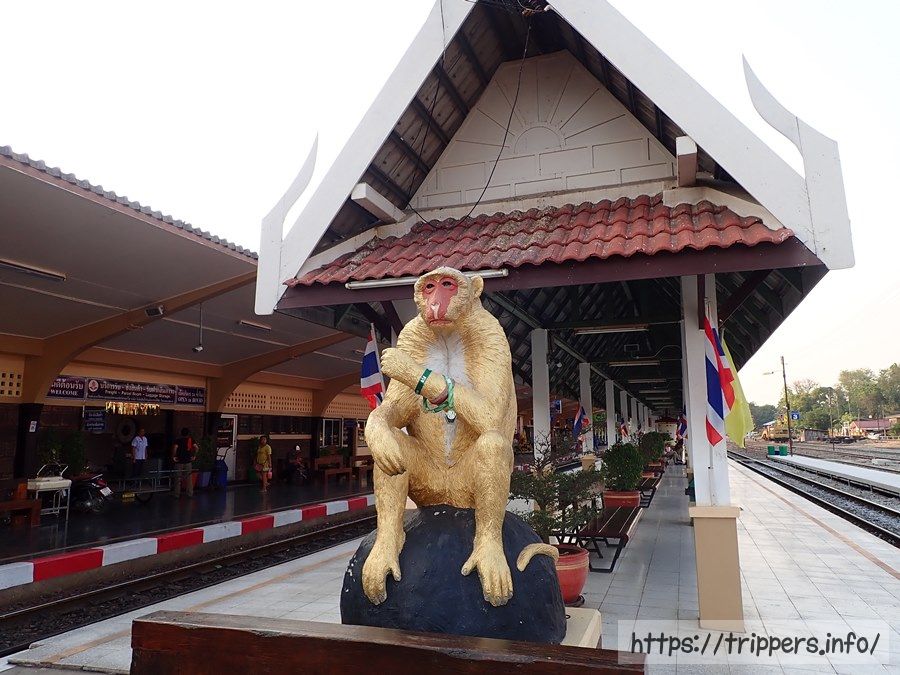14:48にロッブリ―に到着しました。今日はアユタヤまで行って宿泊する予定なので、ロッブリ―を観光した後に乗る電車の乗車券を今買ってしまいます。18:06発の電車を予約しようとしたら何と3時間遅れだとの事。17:28のお高い電車のチケットを購入しました。