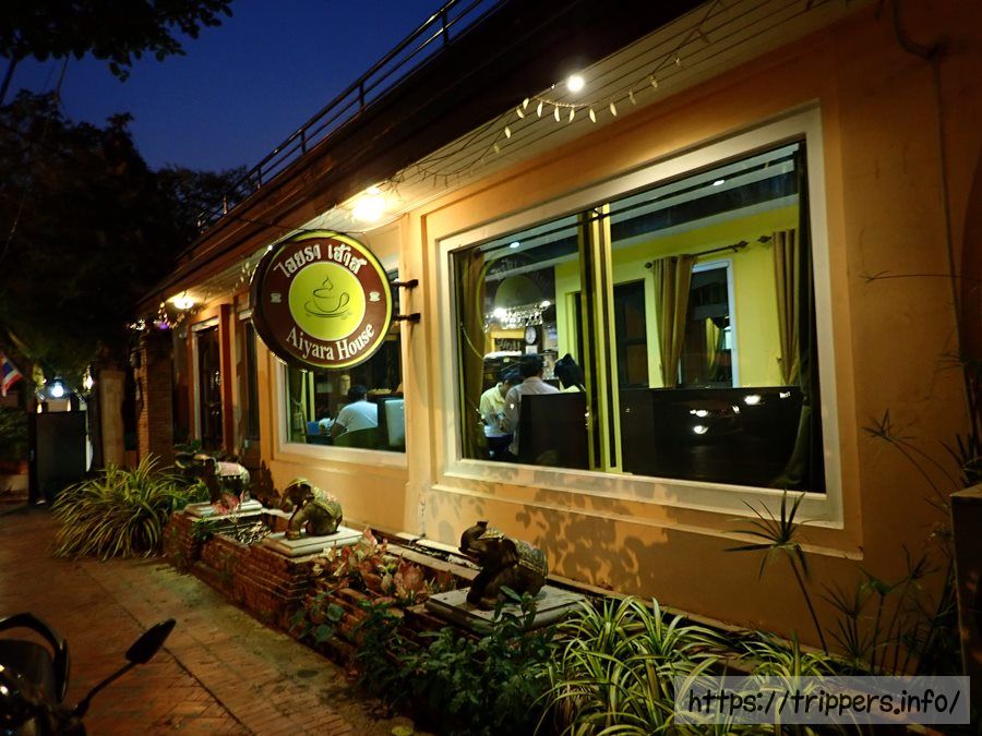 船と徒歩で無事に今日宿泊するホテル、アイヤラハウスに到着しました。どうやらカフェもやっているようです。チェックインと同時に色々親切な説明を受けます。観光マップに色々距離を書きながらお勧めの観光場所を教えてもらうと同時に、結構な距離がありアユタヤが広い事を知りました。夕飯はナイトマーケットがお勧めとの事。