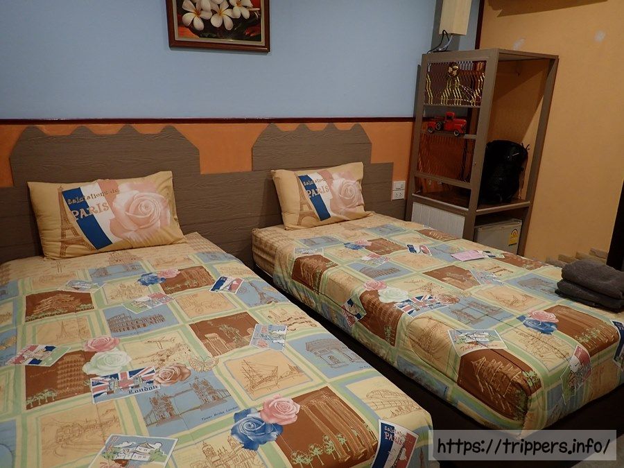 こちらがお部屋です。結構綺麗でおしゃれな雰囲気です。ただ、シャワー兼トイレルームは細長く巨漢の人だと入らないと思いました。