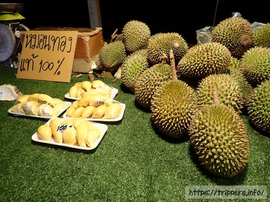 アユタヤでもドリアンが売っていたので90バーツで購入です。食べてみると残念な事に鮮度がちょっと古い感じでした。珍しかったのが、なぜか海ブドウが40バーツで売ってました。