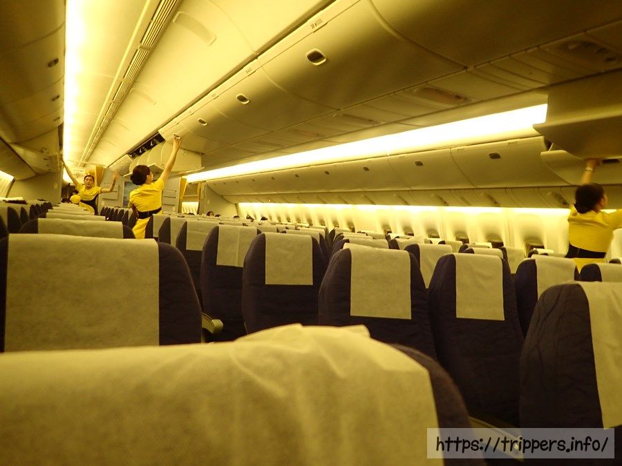 深夜便なので航空券はお安かったです。飛行機の中はなんとガラガラです。