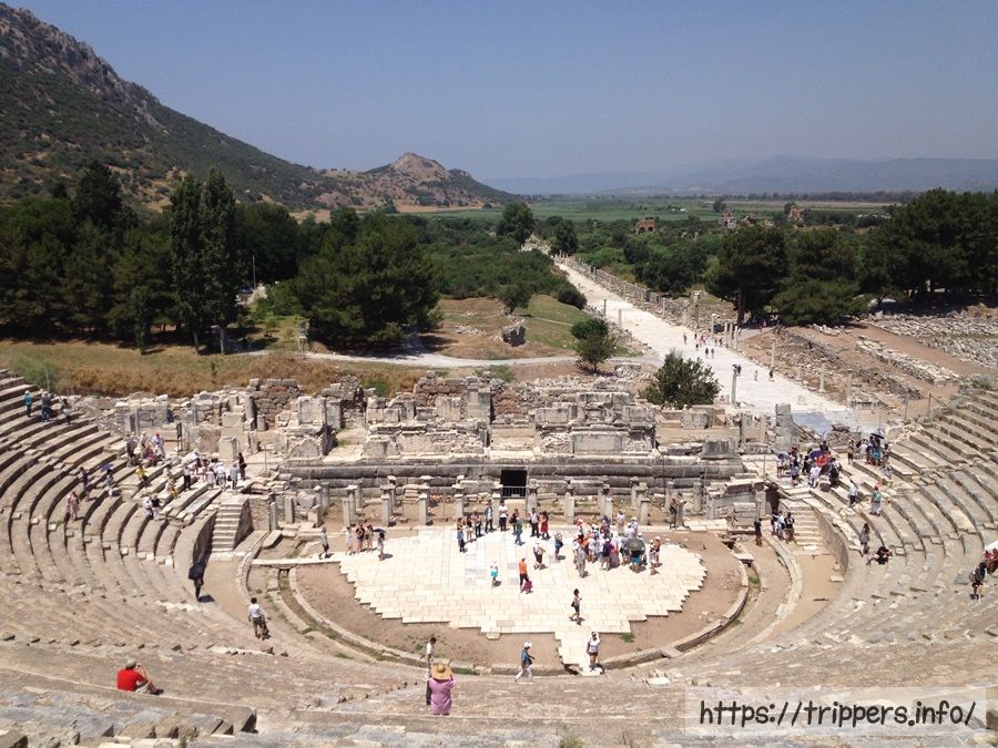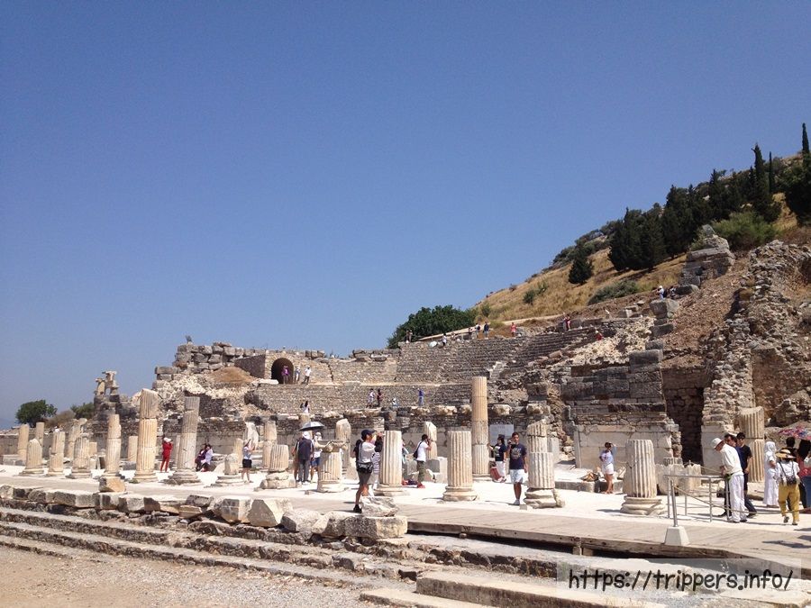 エフェソス遺跡へ到着しました。昨日訪れたヒエラポリスに円形劇場があったのですが、それよりも凄い劇場がここにあるとガイドが言っていたので楽しみです。