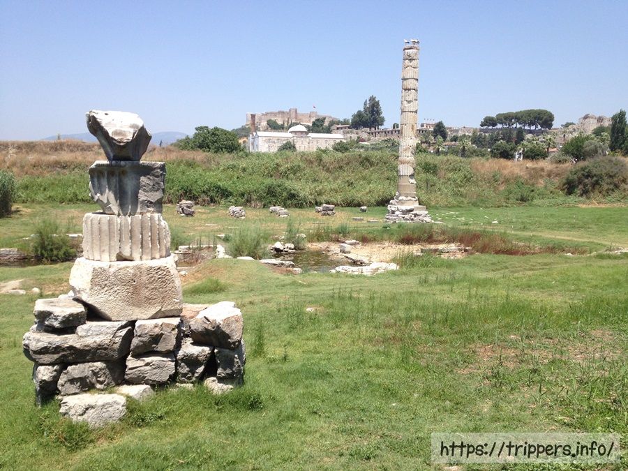 アルテミス神殿跡は神殿の面影は既になく柱が一本残っているくらいです。この柱の天辺にはコウノトリが巣があり、柱とコウノトリ両方を見ると幸せが訪れるとか、そんなことないとか。
