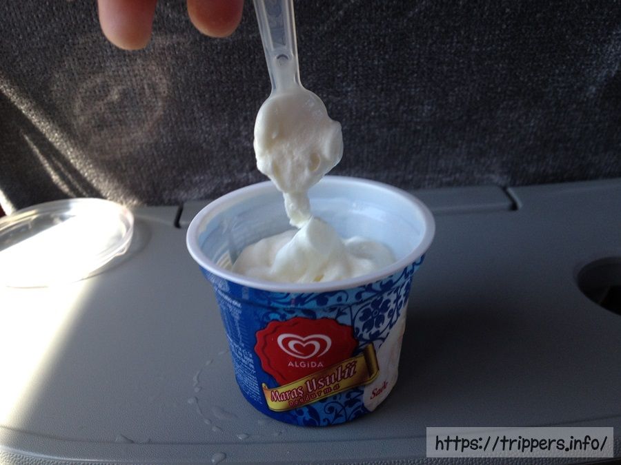 ガソリンスタンド休憩ではトルコアイス(ドンドゥルマ)が売っていました。コンビニアイスだからか、温度が低すぎるのかあまり伸びません。