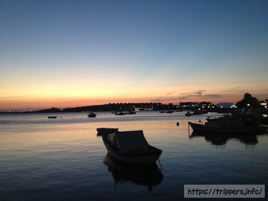 食後はMIGROSというスーパーが徒歩圏内にあったためお土産を買いに行きました。沈む夕陽に染まったコバルトブルーの海が綺麗です。