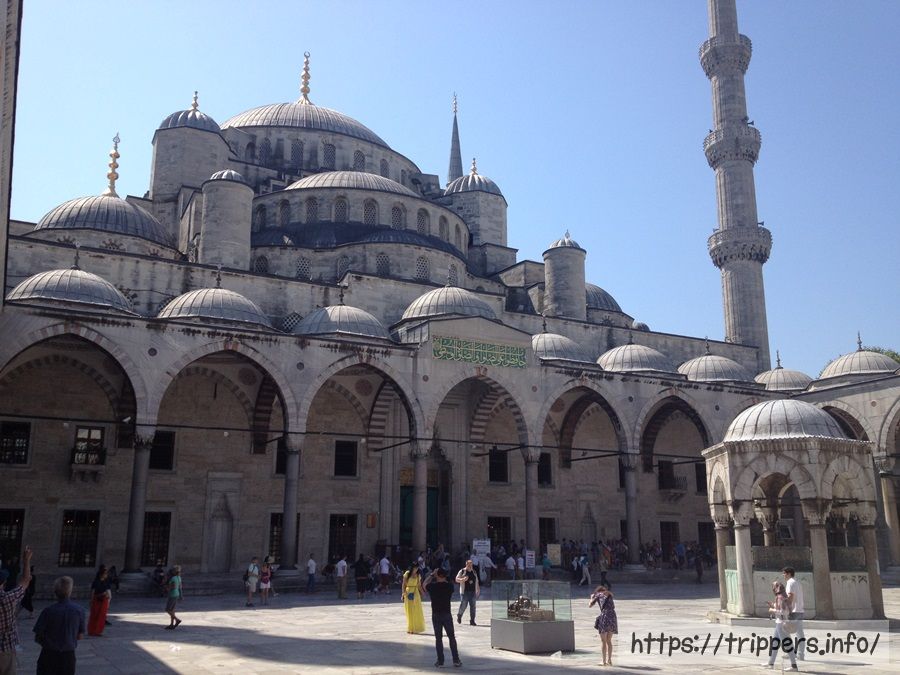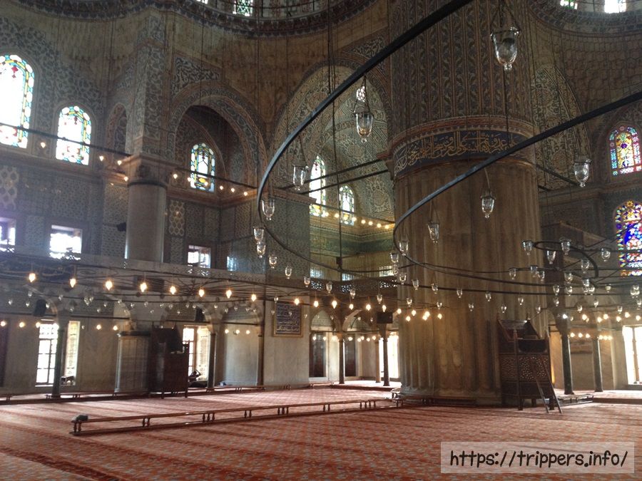 オスマン帝国当時のスルタン、アフメット一世がミマール・シナンの弟子、メフメット・アーという人に1609年に建設を命じ、7年後に完成した歴史があります。内部は土足厳禁で、壁や天井の色彩に魅せられます。