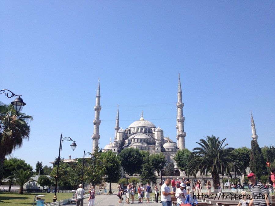 食後はブルーモスクへ向かいます。トルコのイスタンブールを代表するモスクで、世界で最も美しいモスクと言われています。世界遺産であるイスタンブール歴史地域の歴史的建造物群のひとつです。白い壁とカーブした青い屋根が印象的です。