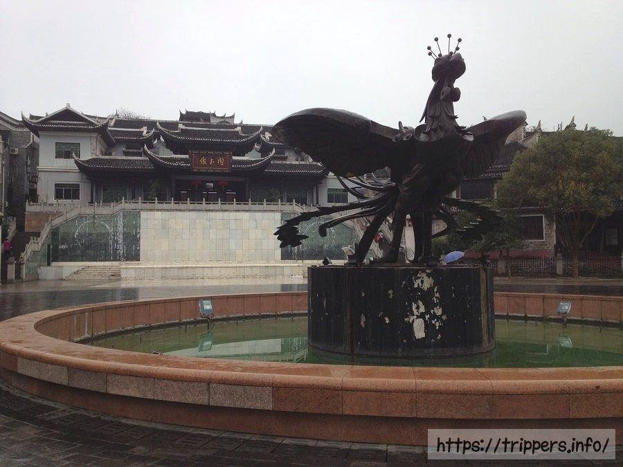 ホテルから鳳凰古城へバスで出発しました。鳳凰古城入場チケットは団体券1枚で購入されているため、ツアー参加者の手持ちに入場チケットはありません。なので、この文化広場で写真撮影をします。自由散策時、間違って鳳凰古城から出てしまっても写真を見せればチケットがなくても入れるみたいです。